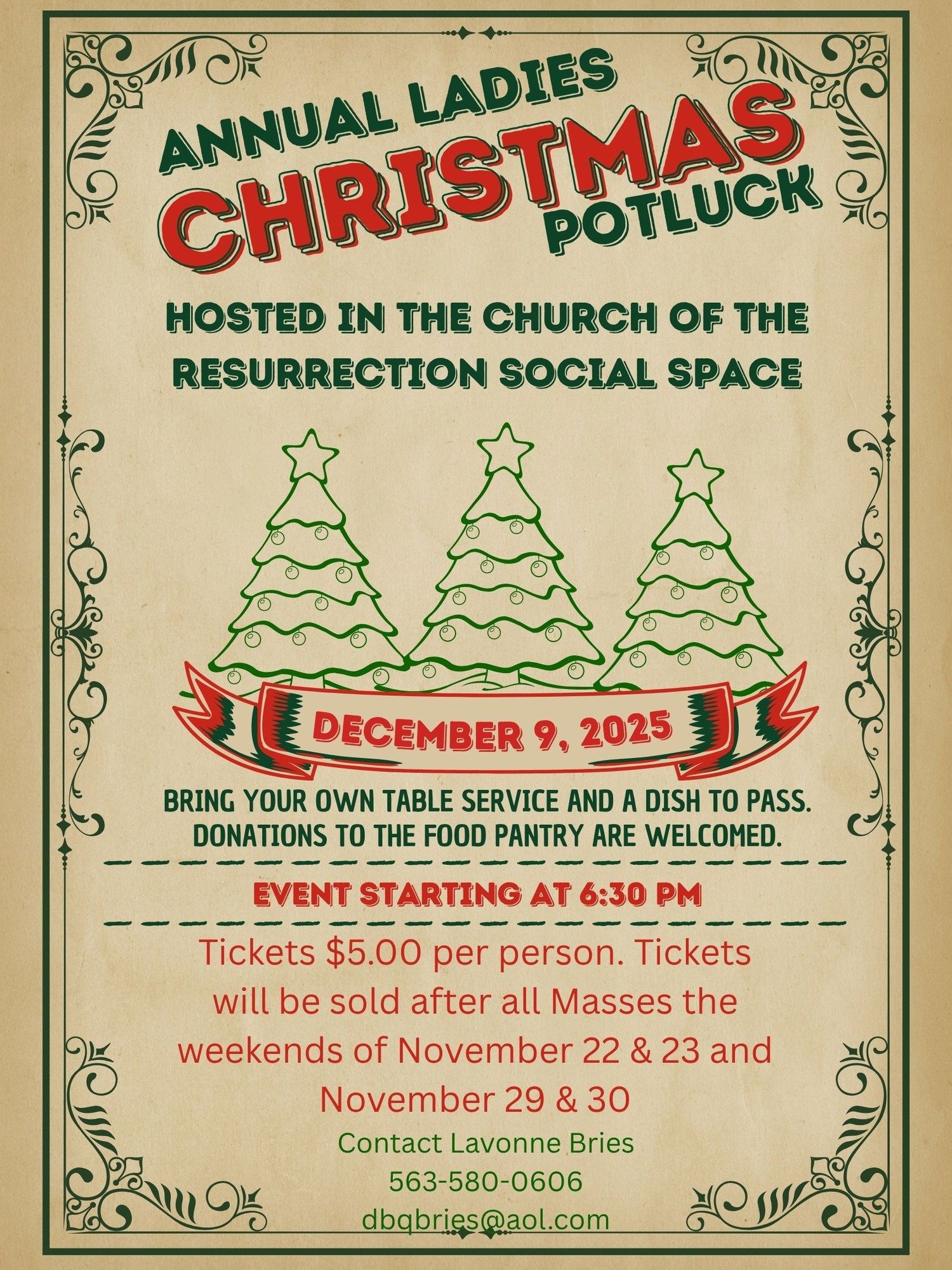 Sunday, Dec. 7: 8:00 AM, 10:00 AM, and Noon
